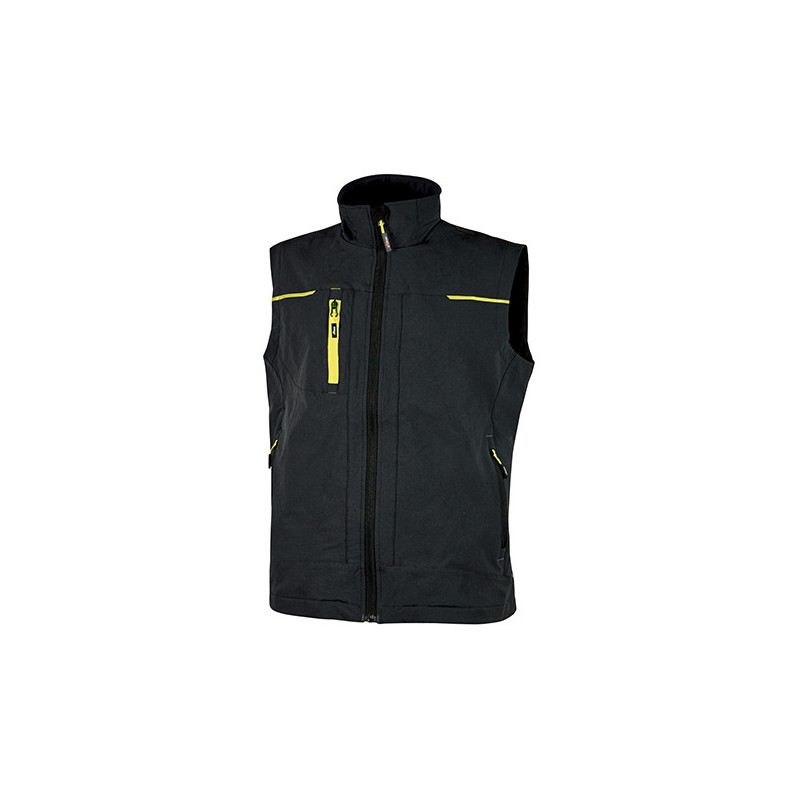Gilet in tessuto U-4 (U-Power 4 way stretch) molto comodo, resistente, morbido sulla pelle, idrorepellente, traspirante e asciuga rapidamente. Dotata di due tasche frontali e una tasca porta cellulare sul petto chiuse con zip.