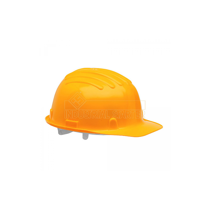 Elmetto economico in polietilene HD, con bardatura interna in tessuto smontabile, isolamento dielettrico 440 Volt, con spugna parasudore.